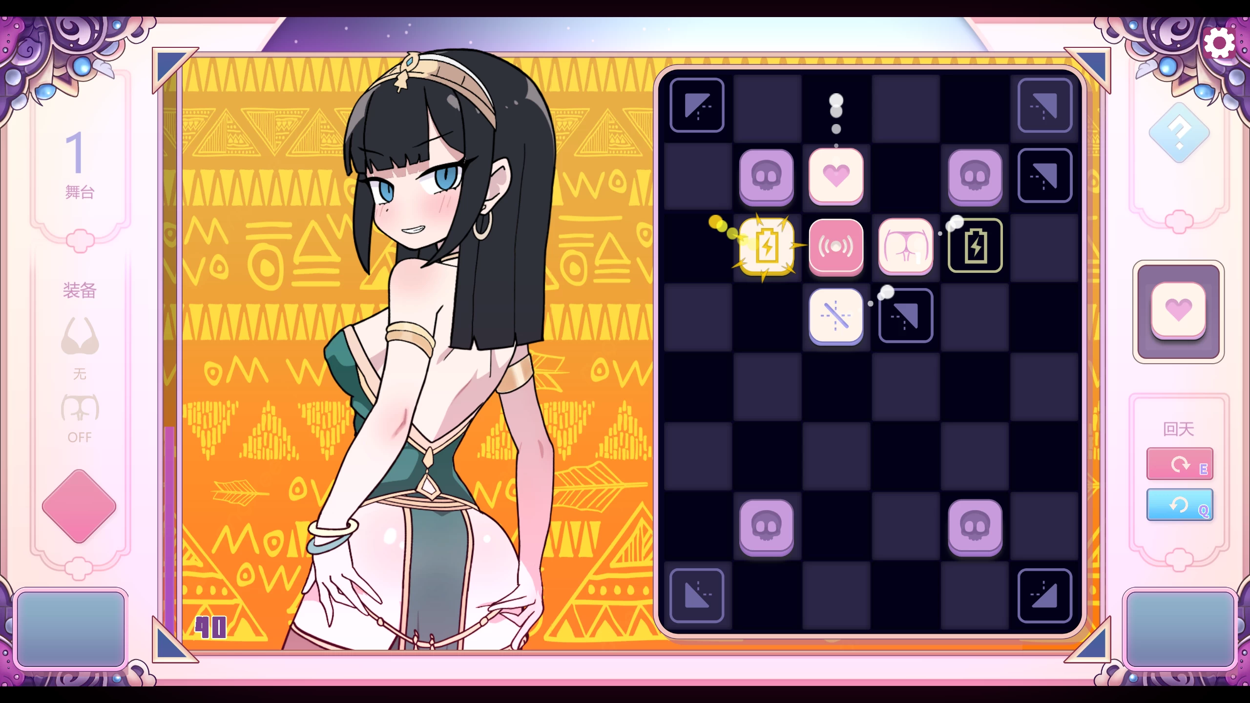 玩法,开局给你一个能往四周发射小球的发射器,你的目的是让小球尽可能多的跳到爱心地块上,从而获得更高的分数,类似于搭火车轨道,然后到达一定分数后就可以解锁下一阶段,但是,他给的那些“铁轨“给的特别随机(转向啊反弹啊什么的),每个角色的前三个关卡打完了可以解锁有do的特殊关卡,然后这个特殊关卡内置三小关,如果有一关没达到要求整个特殊关卡重来,带点脑子玩不算太难只是会比较耗时间,实质性内容不算多但是画风挺可爱的所以勉强打完了。