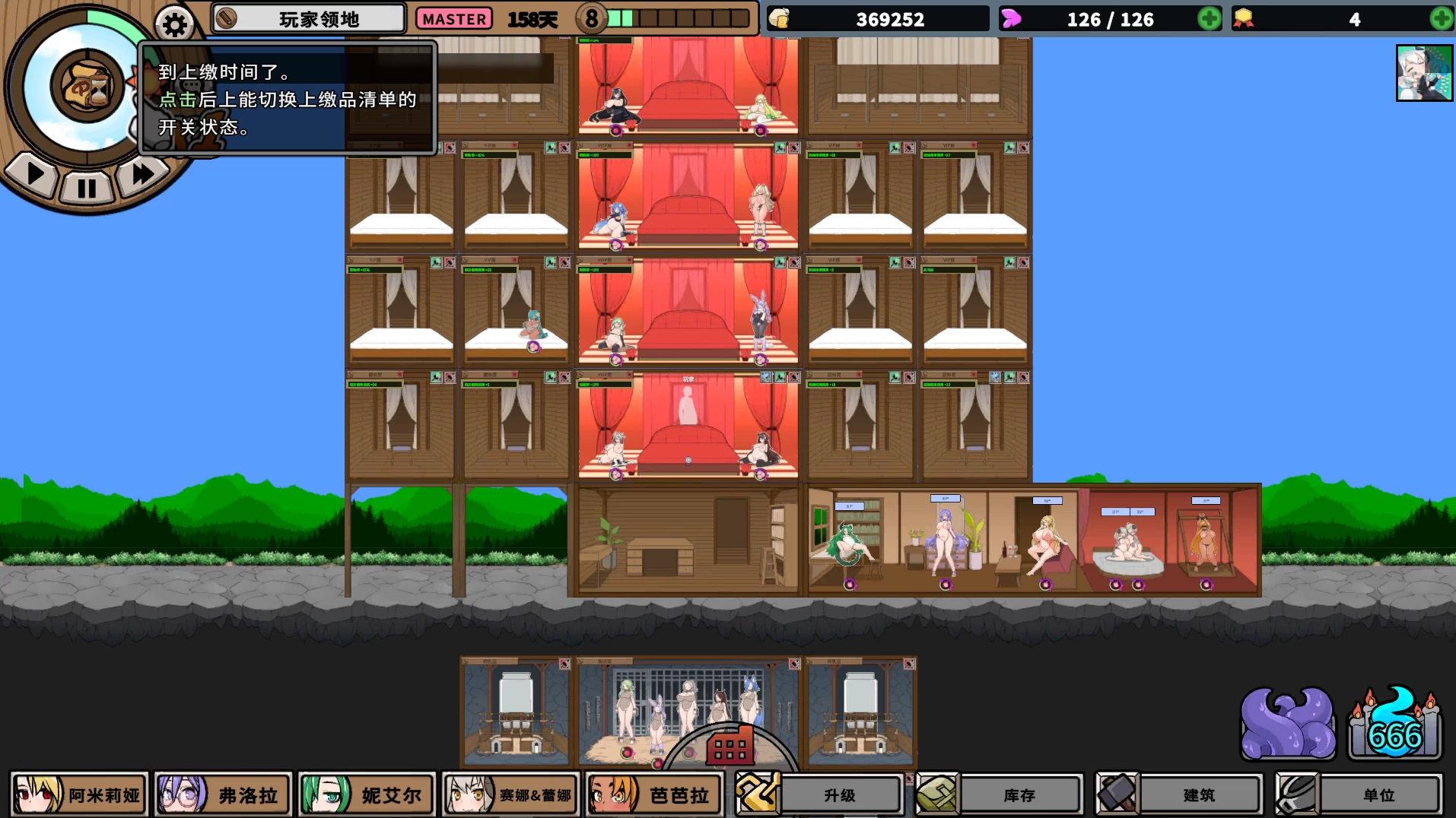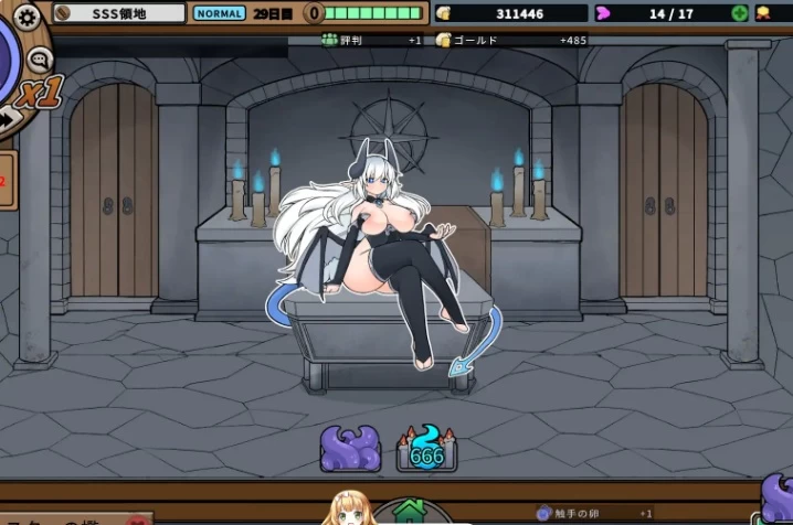 她将领地交给玩家管理,并通过养育怪物与奴隶的怪物农场以及奴隶妓院的经营,来测试玩家的实力。