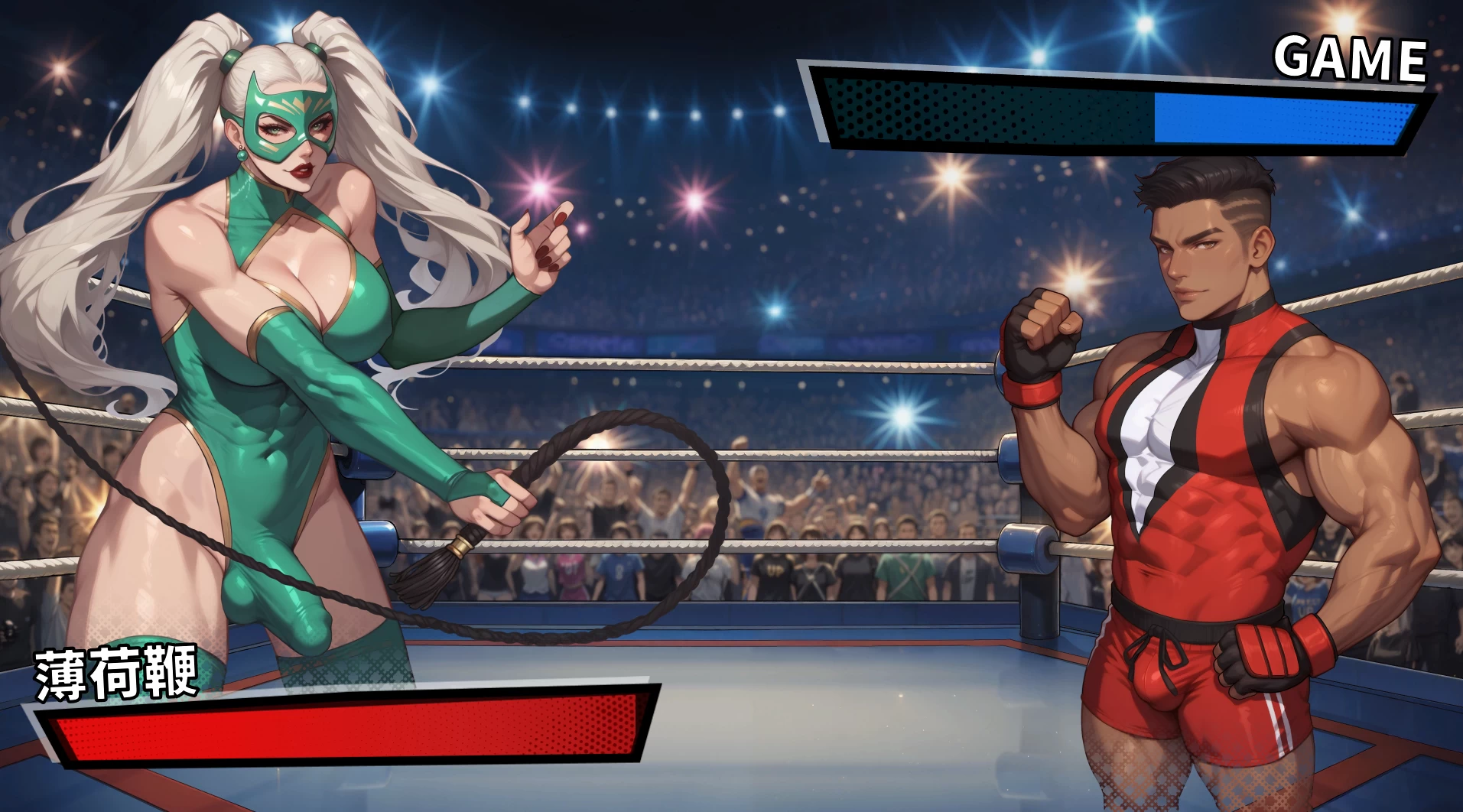 雌雄同体狂热️是一款回合制1v1摔跤游戏,具备角色成长、训练以及轻度管理机制——所有这些都融入了现代摔跤背景,并充斥着挑逗性的18+成人内容。