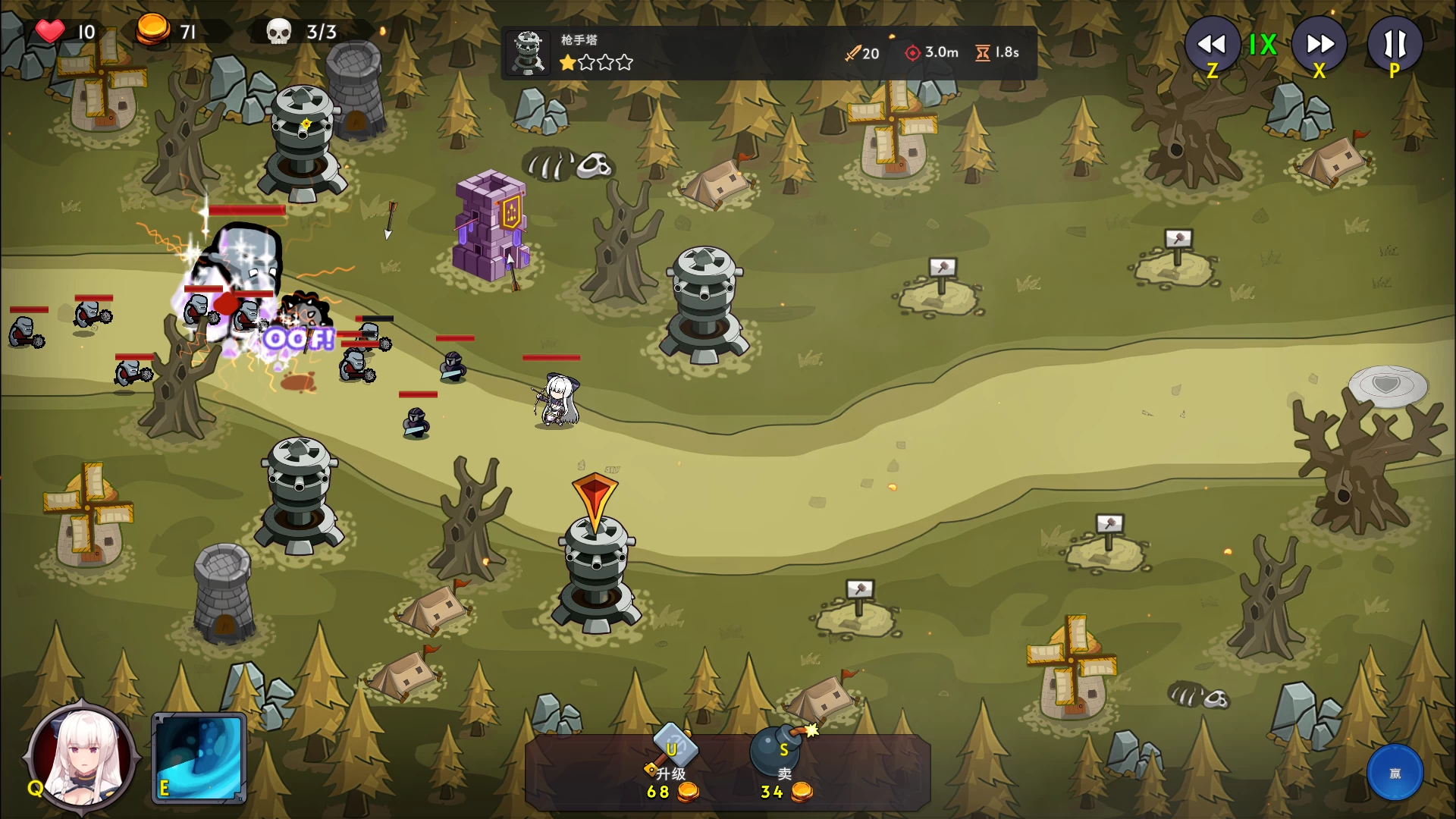 面对怪物大军,在正确的位置建造正确的塔楼,使用正确的塔楼组合和正确的女主角将是你胜利的关键。每种塔型对某些类型的敌人都是好的,而对某些类型的敌人则是坏的,对于每一个女主角来说也是如此。 善用女主角的技能可以帮助你从可怕的情况中恢复过来。